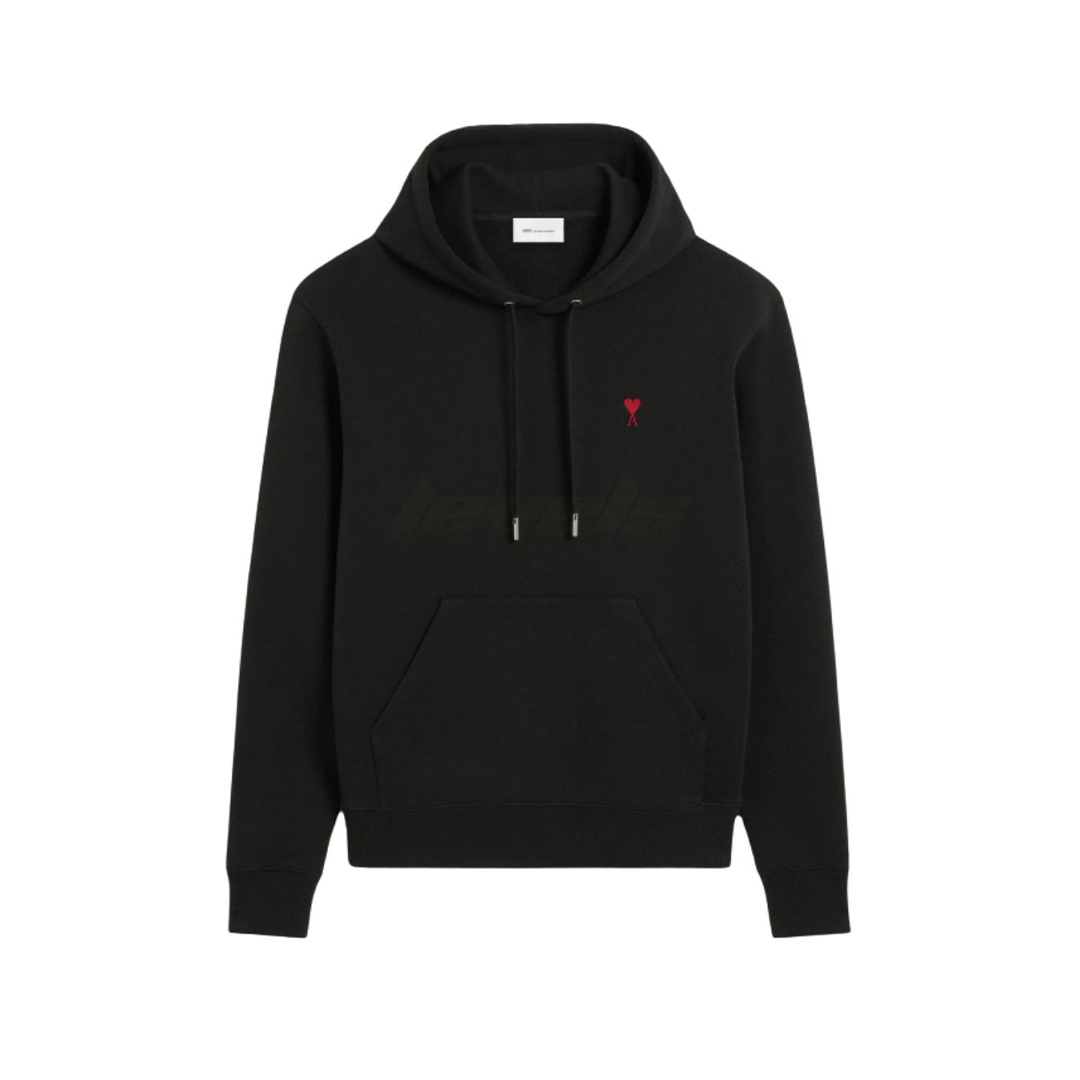 AMI Paris Cotton Ami de Coeur Hoodie Black
